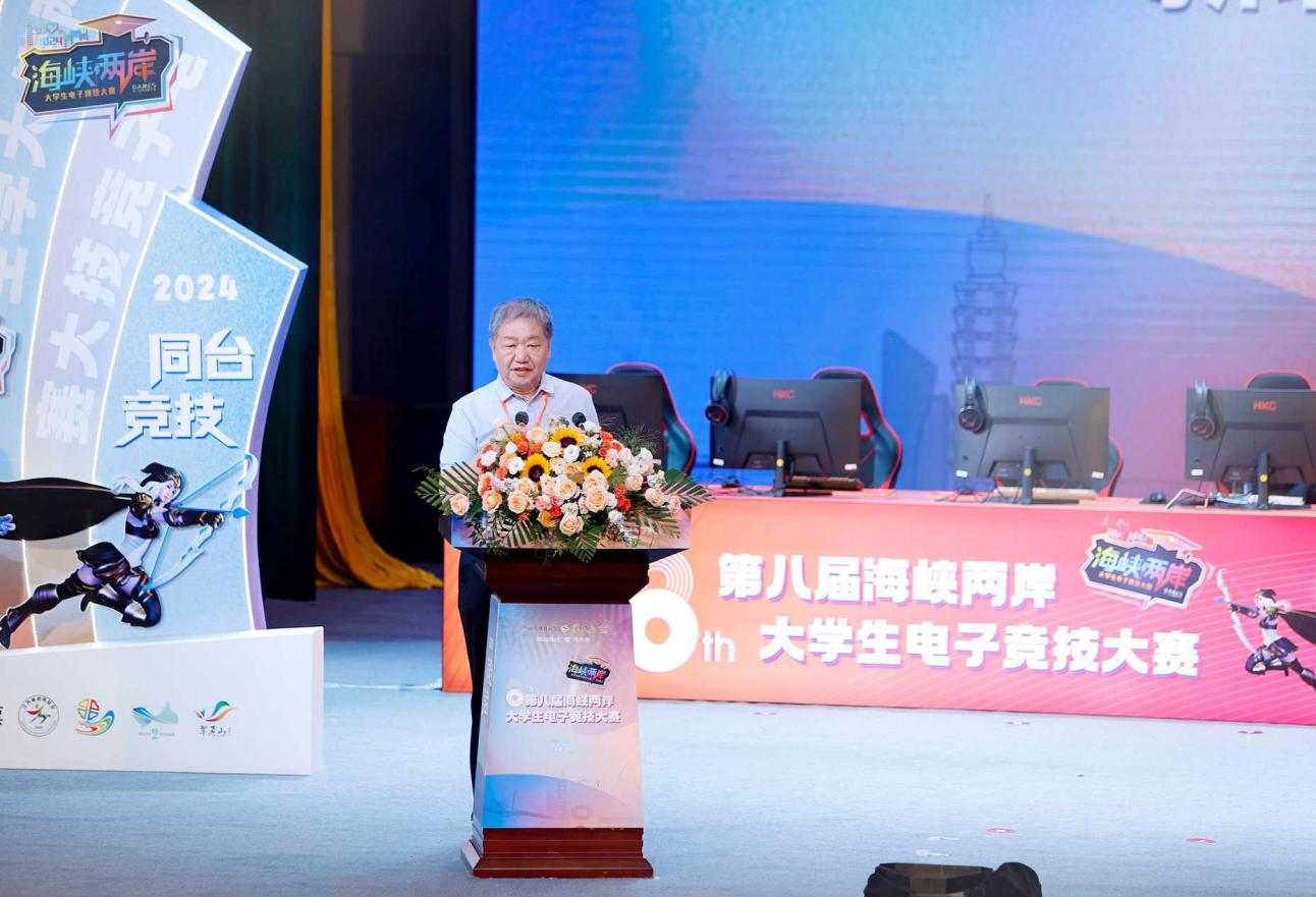 范金华在致辞中说,今年是双方时隔五年的再次线下相聚,希望海峡两岸大学生电竞大赛持续成为促进两岸青年心灵契合的重要推力,推动两岸青年人汇聚起共同的历史观、民族观、国家观,携手推动两岸关系和平发展,一起同舟共济,共创美好未来。新北市体育总会理事长蒋根煌表示,近年来海峡两岸电竞发展各有优势、快速成长,推动两岸青年间的文化体育交流持续开展,电竞交流的种子在两岸青年间萌芽,衷心期盼海峡两岸大学生电子竞技大赛成为两岸青年间切磋电竞技艺、互动友谊的最佳平台。