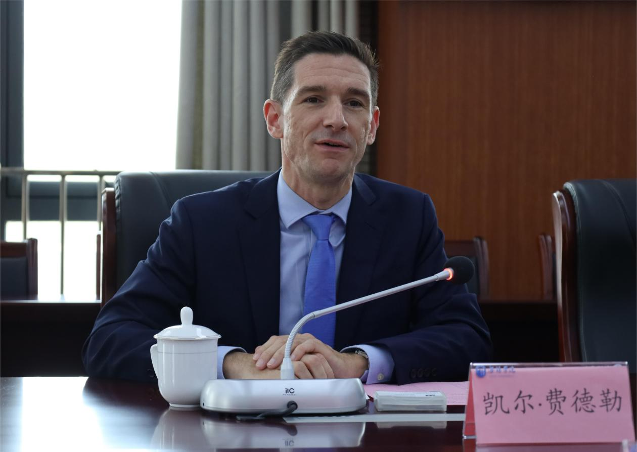 杨建新对Kai-Arne Fiedler一行的到来表示热烈欢迎,并就学校师资队伍建设、人才培养、国际合作交流等情况进行了详细介绍。他表示,为打造中德高校合作新平台,助推教育高质量发展,一要深入实施人才强校战略,做好海外高层次人才引进工作,打造具有国际水平、国际视野、国际竞争力的师资队伍;二要汲取德国“双元制”教育模式的先进经验,将产教融合和校企合作深度融入办学治校和人才培养全过程,助推我校师资队伍国际化能力建设和国际化教育纵深发展;三要持续拓展对外合作交流空间,积极开展高水平在校生出国交流和联合培养项目,进一步提升学校国际化水平和国际影响力。