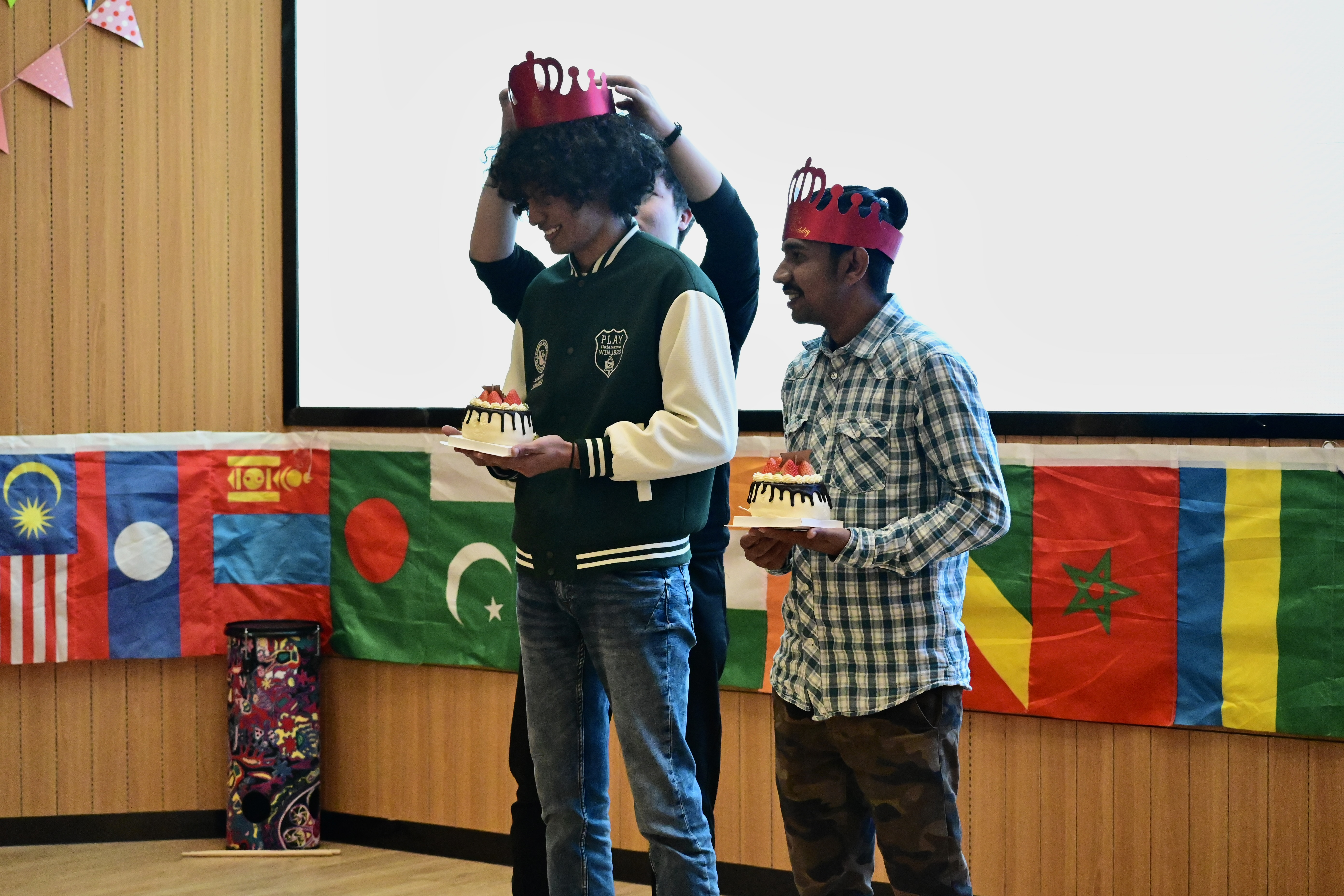 游戏结束后,派对迎来了策划已久的惊喜环节。派对当天是国教院Rayane(摩洛哥)、Uzzal(孟加拉国)两位同学的生日,国教院为他们准备了生日惊喜,这也成为了他们美好且难忘的经历。