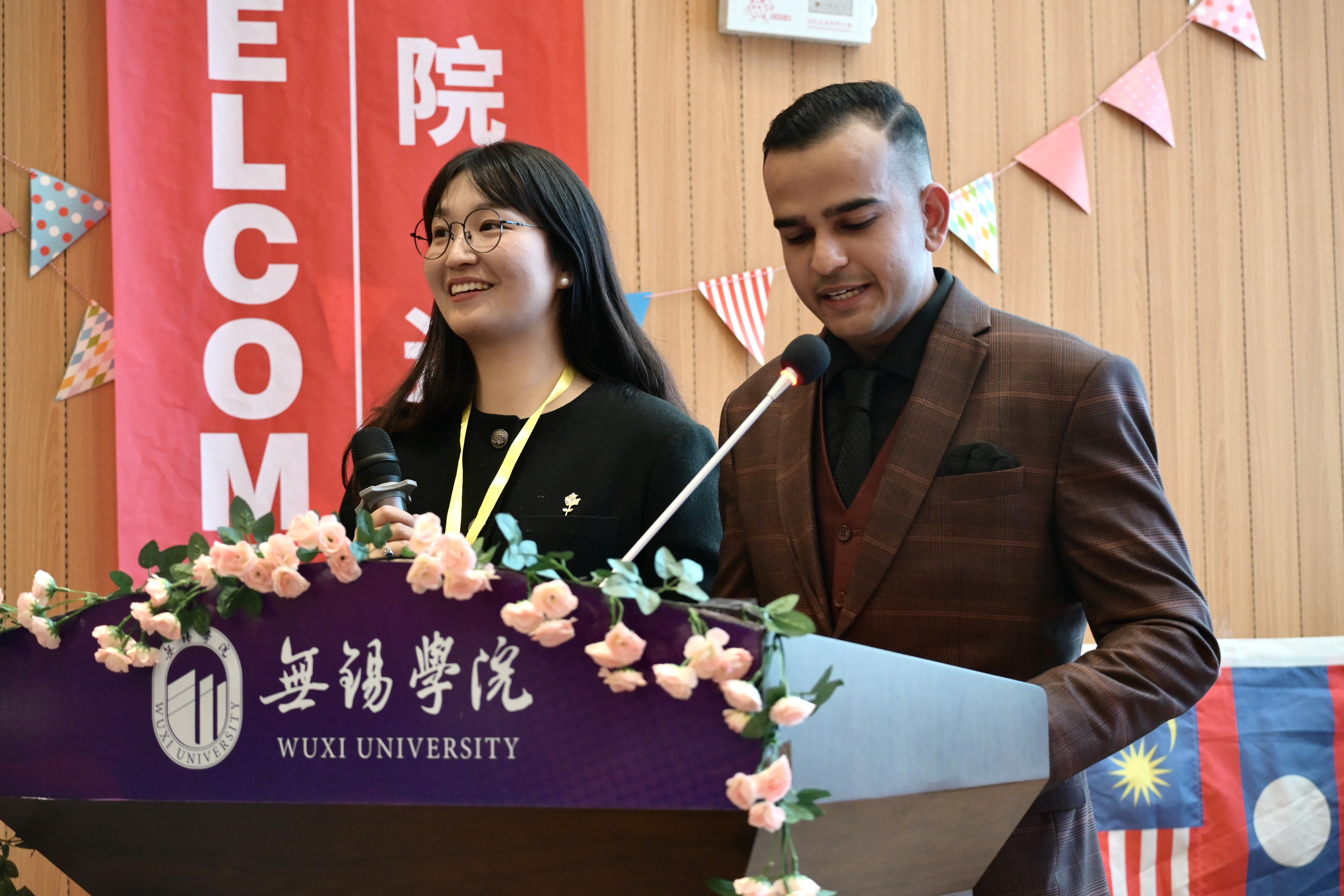 致辞结束后,老生代表Sam(巴基斯坦)作了发言,讲述了自己这几年在校学习的收获并为新生送出祝福。