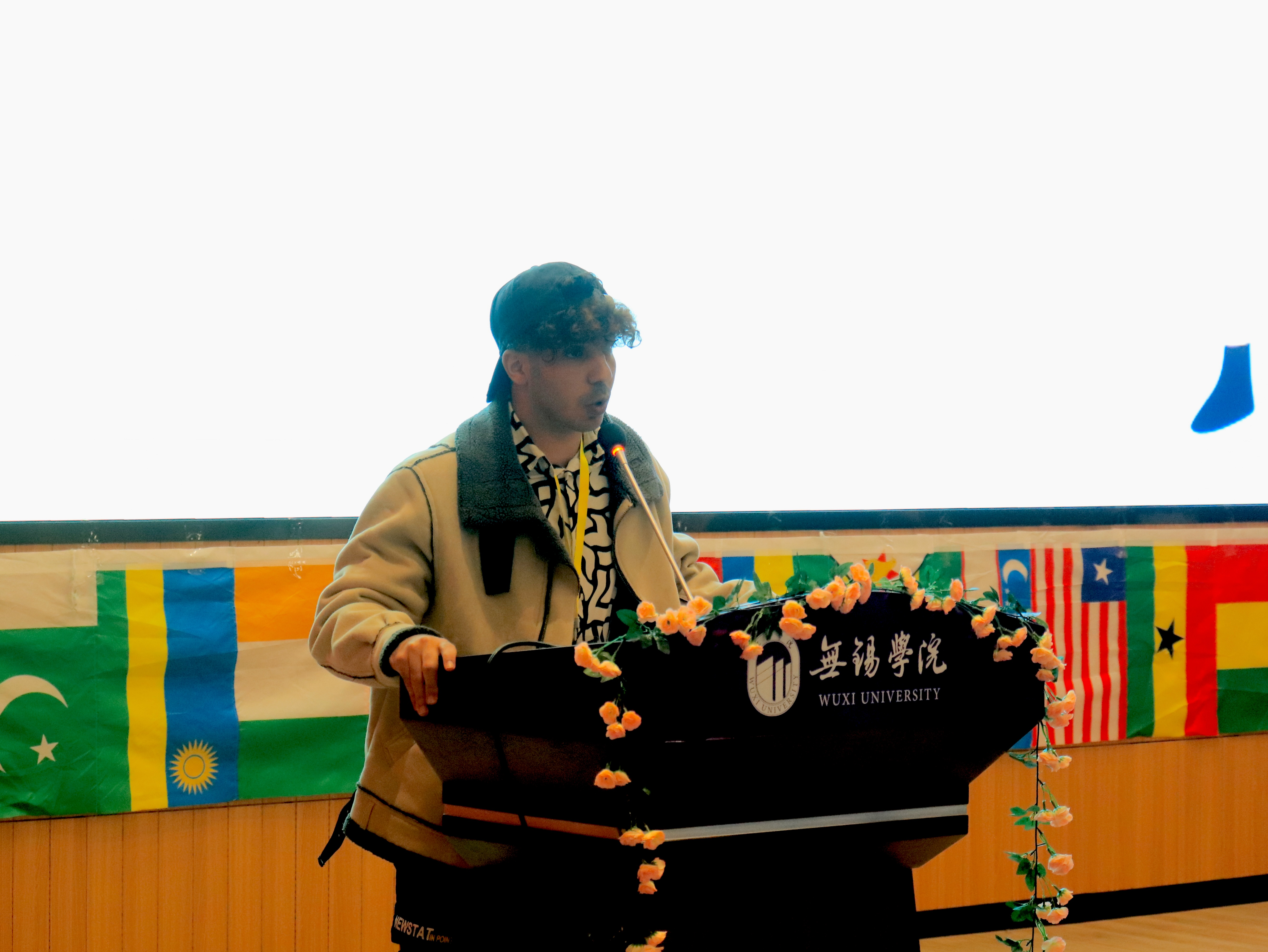 新生代表Abood(也门)在发言中提到了自己对校园生活的期待、对在中国生活的憧憬以及对未来的展望。