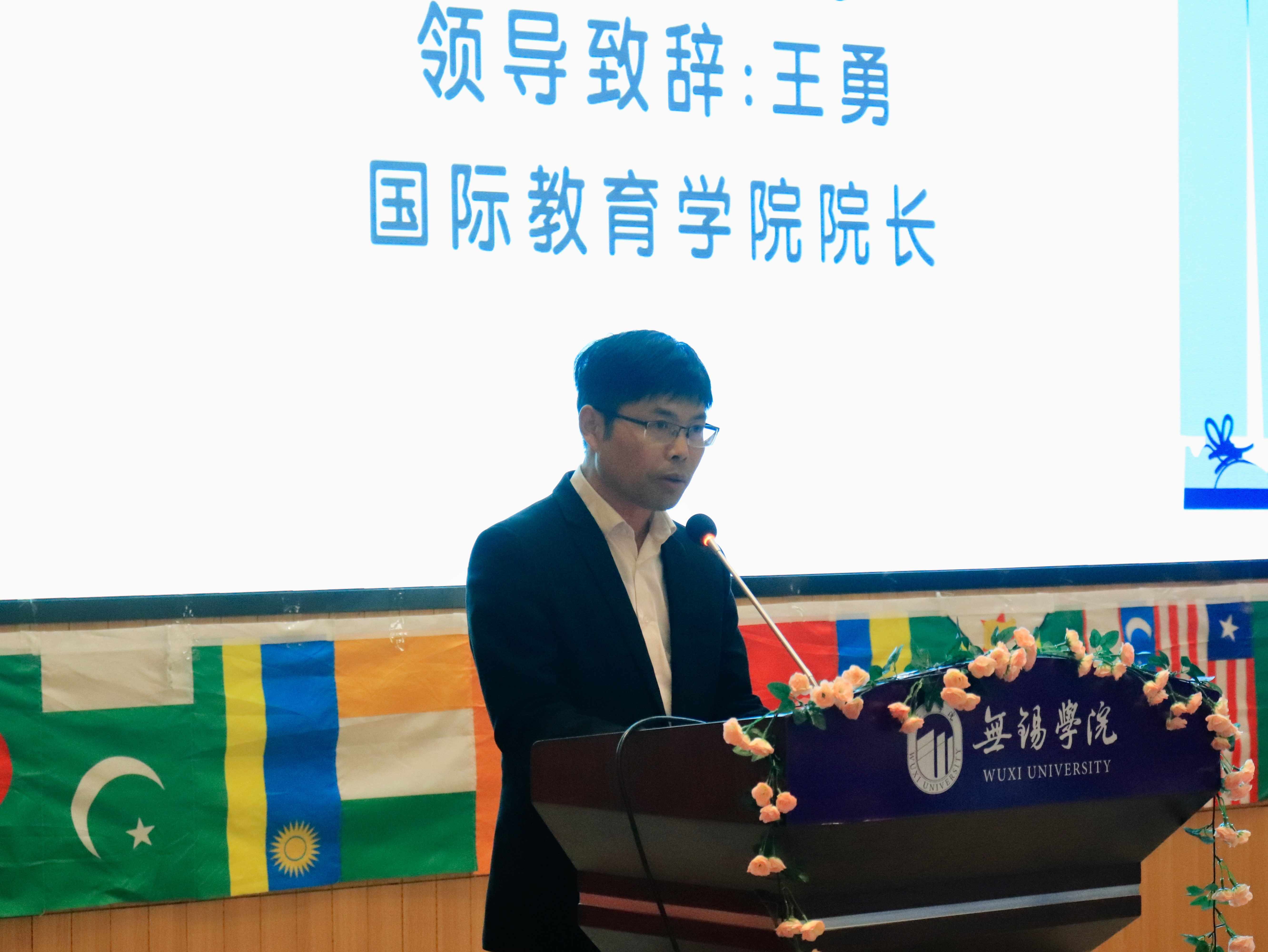 随后,在观众们的热烈欢迎下,国教院院长王勇致辞,他向国教院全体留学生表达了最亲切的问候和祝福。