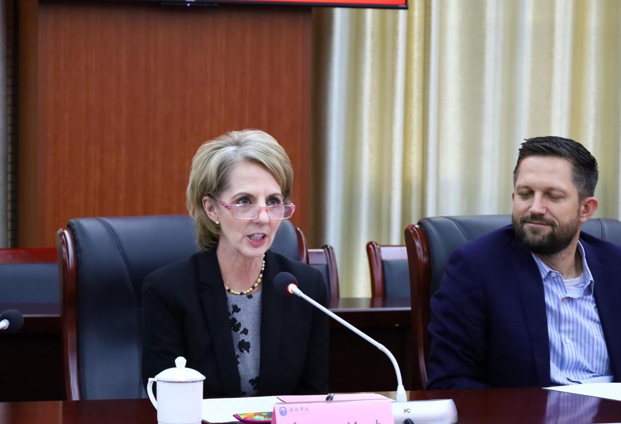 张永宏代表学校对Tisa Mason博士一行的到来表示热烈欢迎,介绍了我校自转设以来在人才培养、师资建设、学科发展和国际合作交流等方面取得的突出成效,回顾了两校自建立校际合作关系以来双方交流互动密切,合作范围不断扩大,合作成果丰硕。同时表示,期待两校相互学习、相互支持、共同发展,在师生学术交流、合作科研、学生赴美读研深造等方面进一步提供高质量平台,促进中美高等教育合作交流。