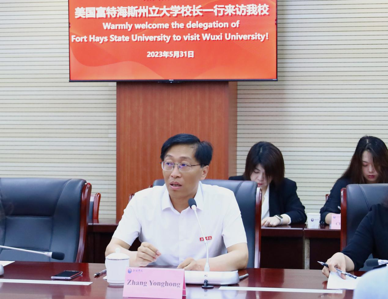 为了加快和推进新时代教育对外开放高质量发展,围绕我校建设一流创新应用型大学目标,加强与海外高水平大学合作,推进高层次国际化人才培养,提升学校国际化办学水平。5月31日,我校与来自美国富特海斯州立大学校长Tisa Mason博士、副校长Jill Arensdorf博士等一行8人进行了友好交流,校长张永宏,副校长梁惠娥,教务处、学生工作处和传媒与艺术学院等相关单位负责人出席会议。会议由梁惠娥主持。