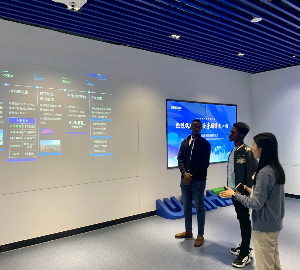 会后,企业负责人带领留学生参观了企业展览区,详细讲解了企业发展历程、核心科研技术、最新产品、全球市场分布、未来发展方向及企业荣誉。