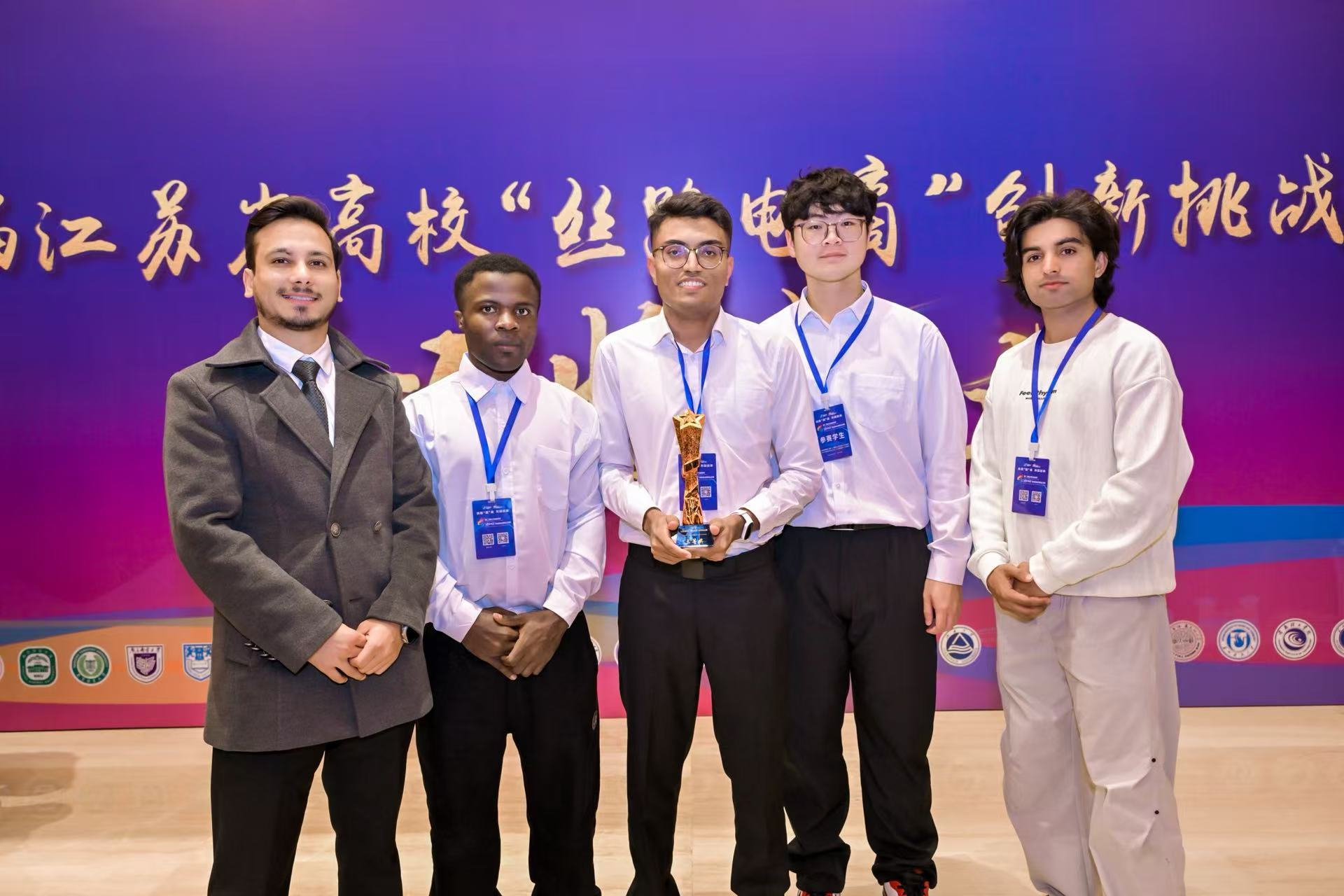 该团队由来自印度尼西亚、巴基斯坦、印度、喀麦隆等国的留学生组成。在备赛过程中,团队成员深入调研、精心策划,以国家级非物质文化遗产“宜兴紫砂壶”为核心,精心打造了一个融合文化传播与商业实践的跨境电商案例,为紫砂壶这一中国传统工艺开拓了国际传播新路径。不仅展现了江苏优质产品的特色,更通过紫砂壶这一文化载体,生动讲述了中国故事,体现了跨境电商在文化推广中的独特价值。