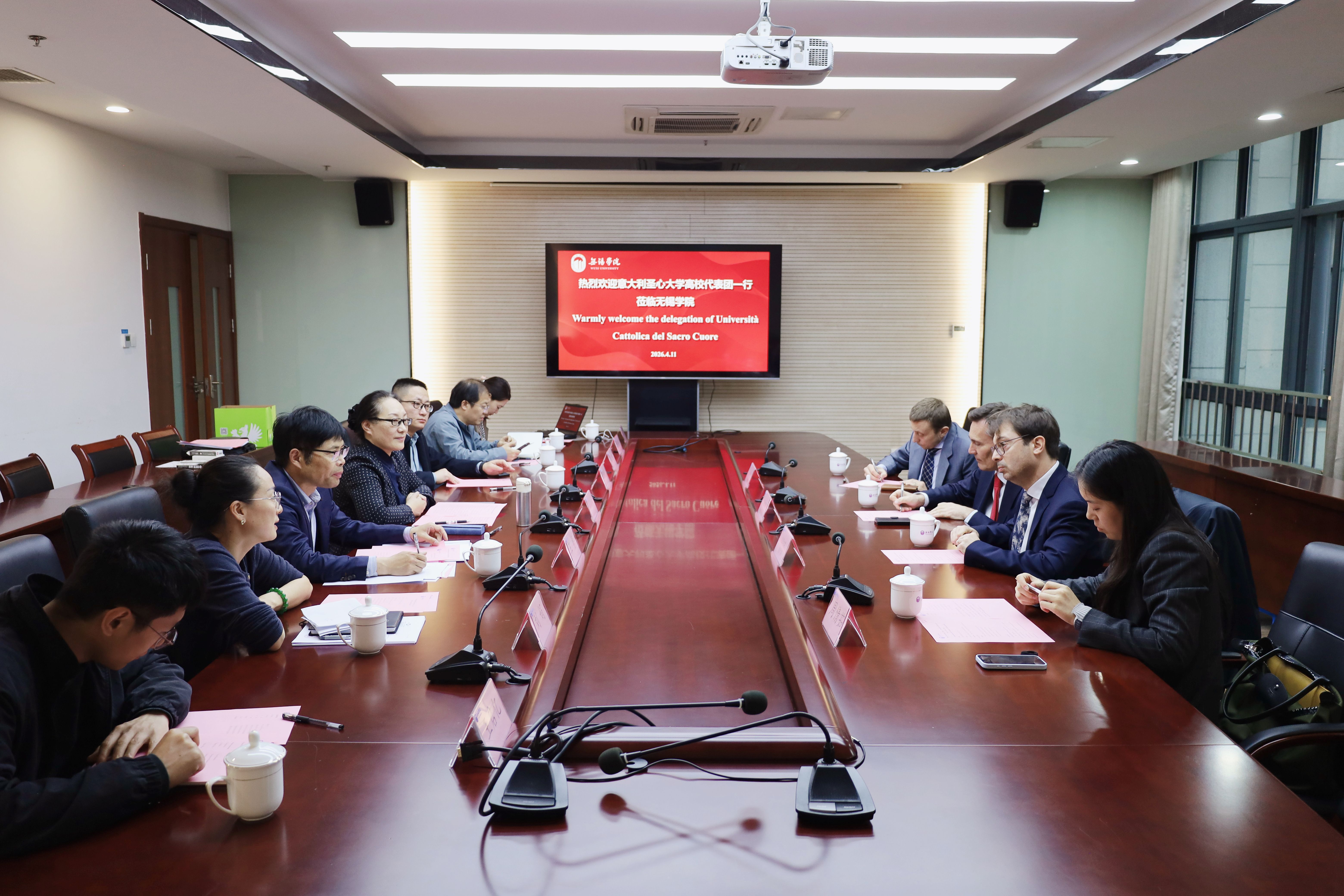 Edilio Mazzoleni助理校长对我校的热情接待表示感谢,并高度评价了过去双方合作取得的成效。他表示,意大利圣心大学作为意大利领先的综合性大学,始终重视与中国高校的深度合作。会上,意大利圣心大学数学、物理与自然科学学院院长Claudio Giannetti 教授详细介绍了学校在人工智能、信息技术、网络安全等领域所取得的成果。双方围绕学科交叉融合、研究生联合指导、共同申报国际科研项目等展开具体洽谈,并就项目合作达成共识。
