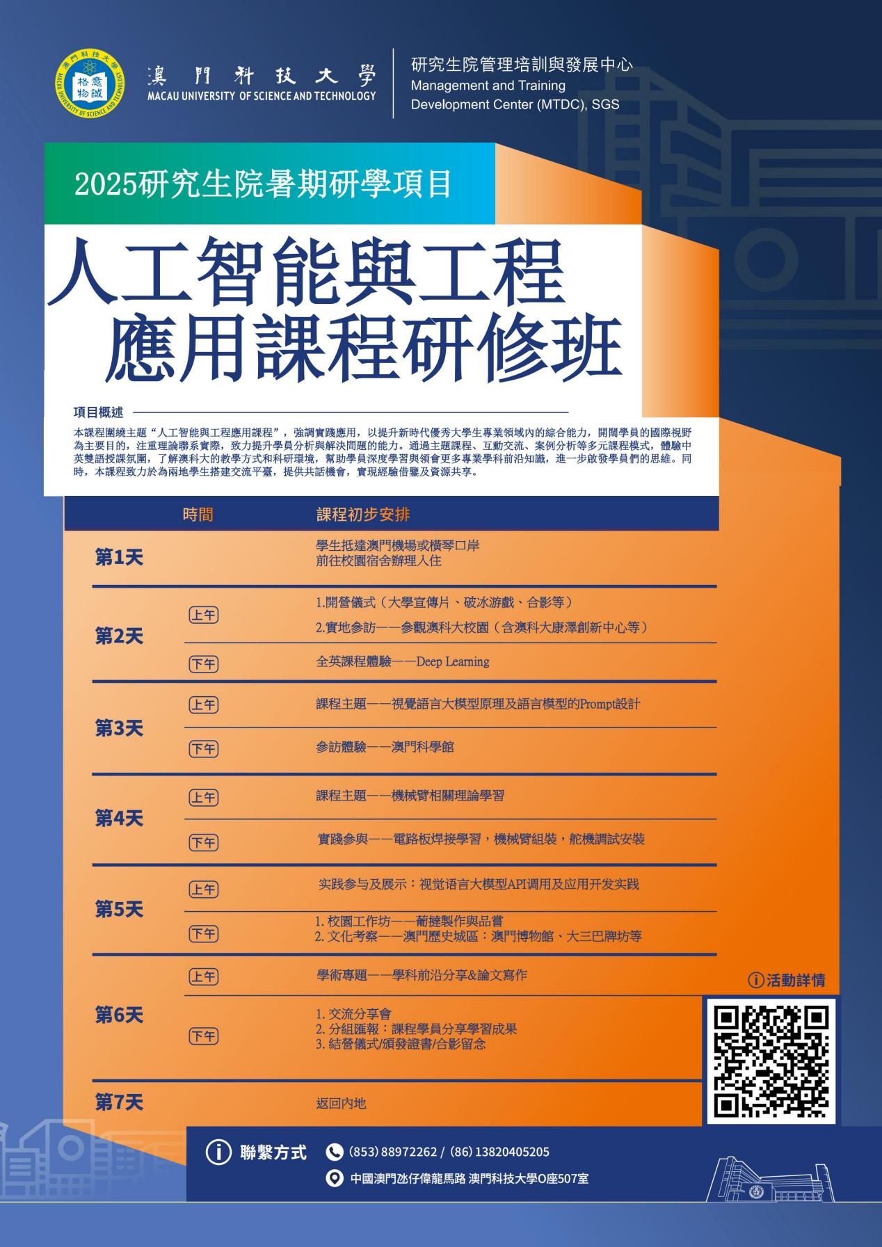 注:实际课程安排会综合课室使用情况、师资等因素进行调整,课程信息已同步发布在研究生院管理培训与发展中心官方网站(https://mtdc.must.edu.mo/article/id-14966.html)。