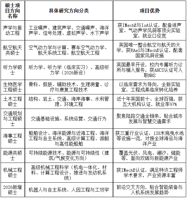 本次开放申请以工程学院优势硕士项目为主,涵盖多个前沿与特色方向,具体如下: