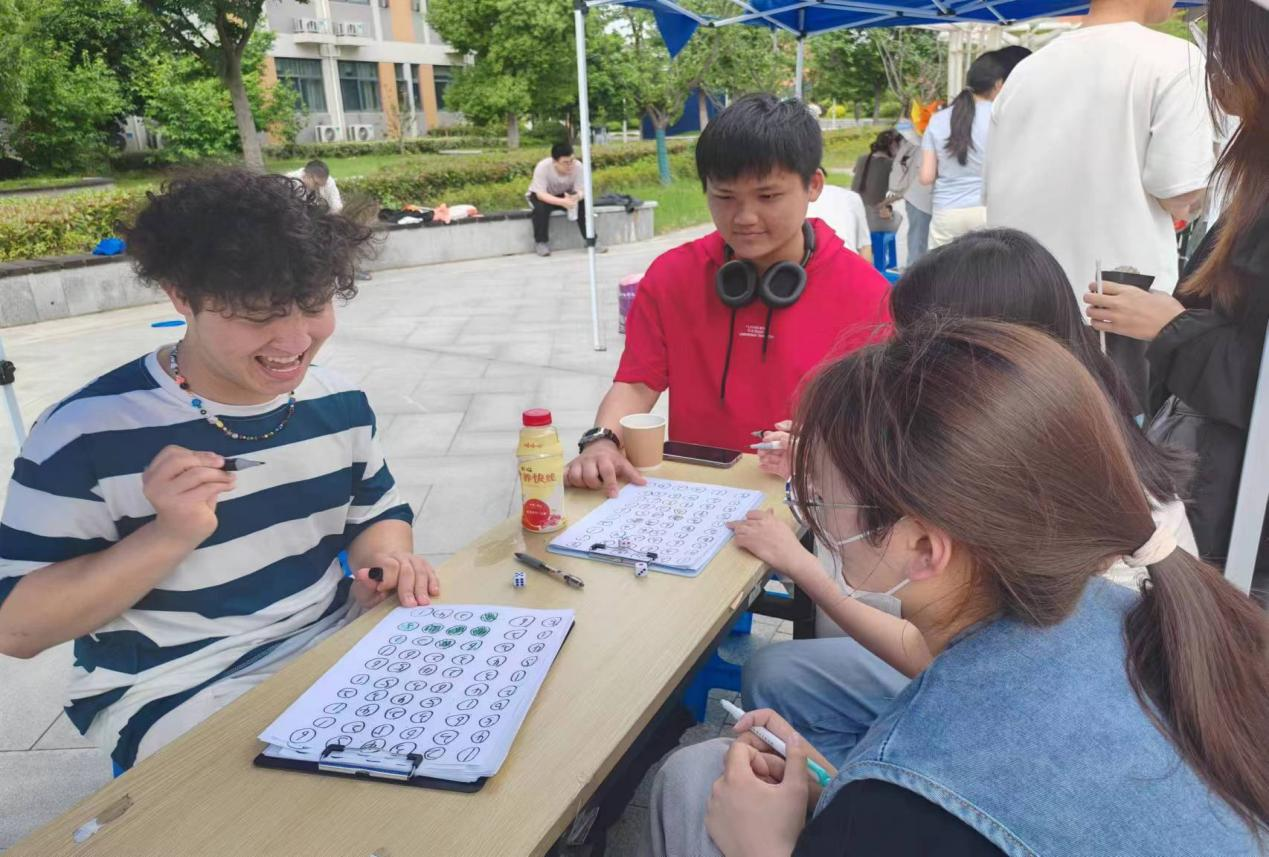 五月二十五日,国教院参加我校“我爱我”心理健康展,留学生们精心设计了情绪拼图、杯球等小游戏,现场氛围热烈积极,每个人都沉浸其中,通过游戏更深入地认识自己的情绪,培养了专注力和团队协作能力。(国际教育学院/文:蒋一琦,杨志林;图:国际教育学院:审核:王勇)
