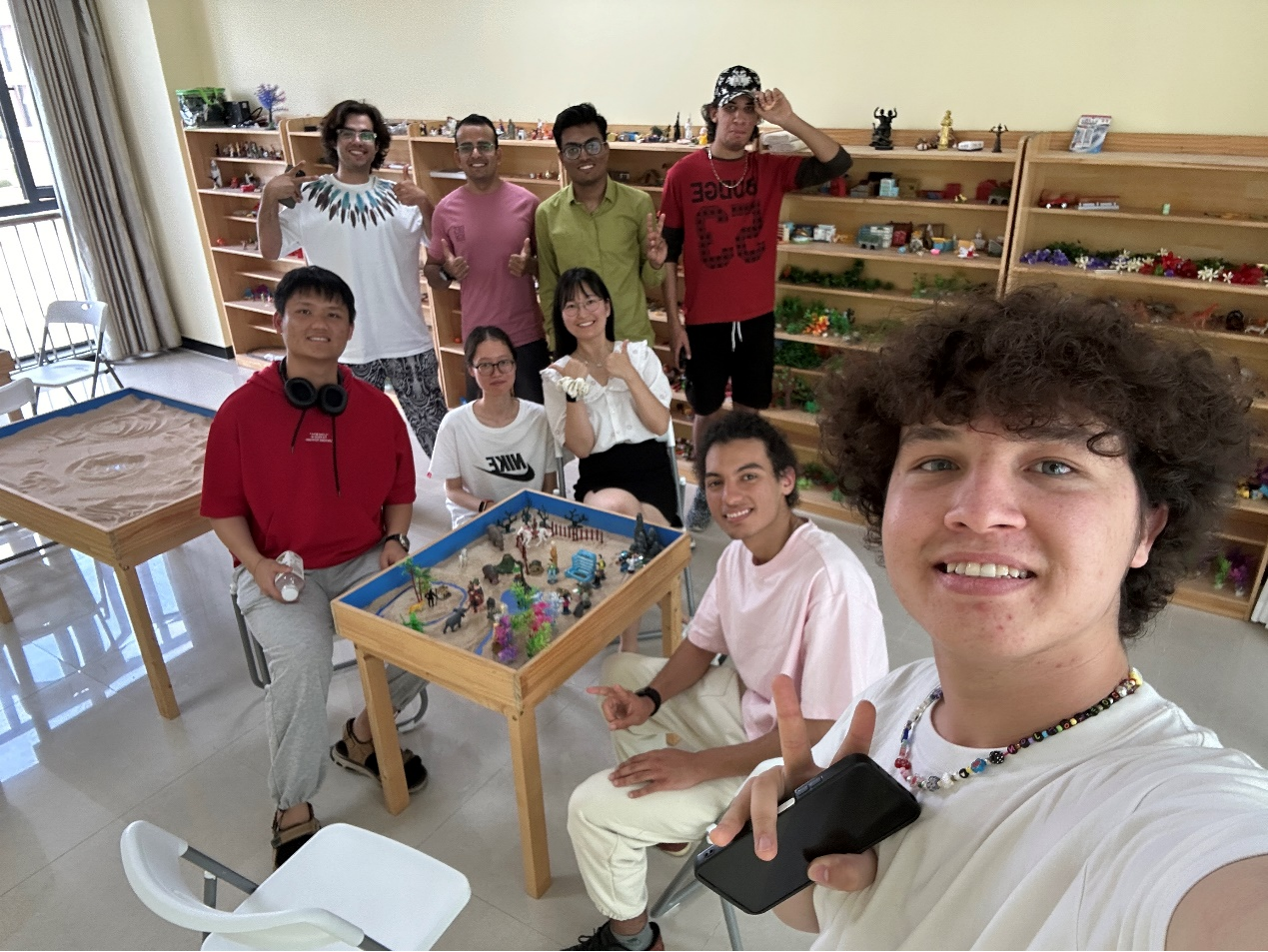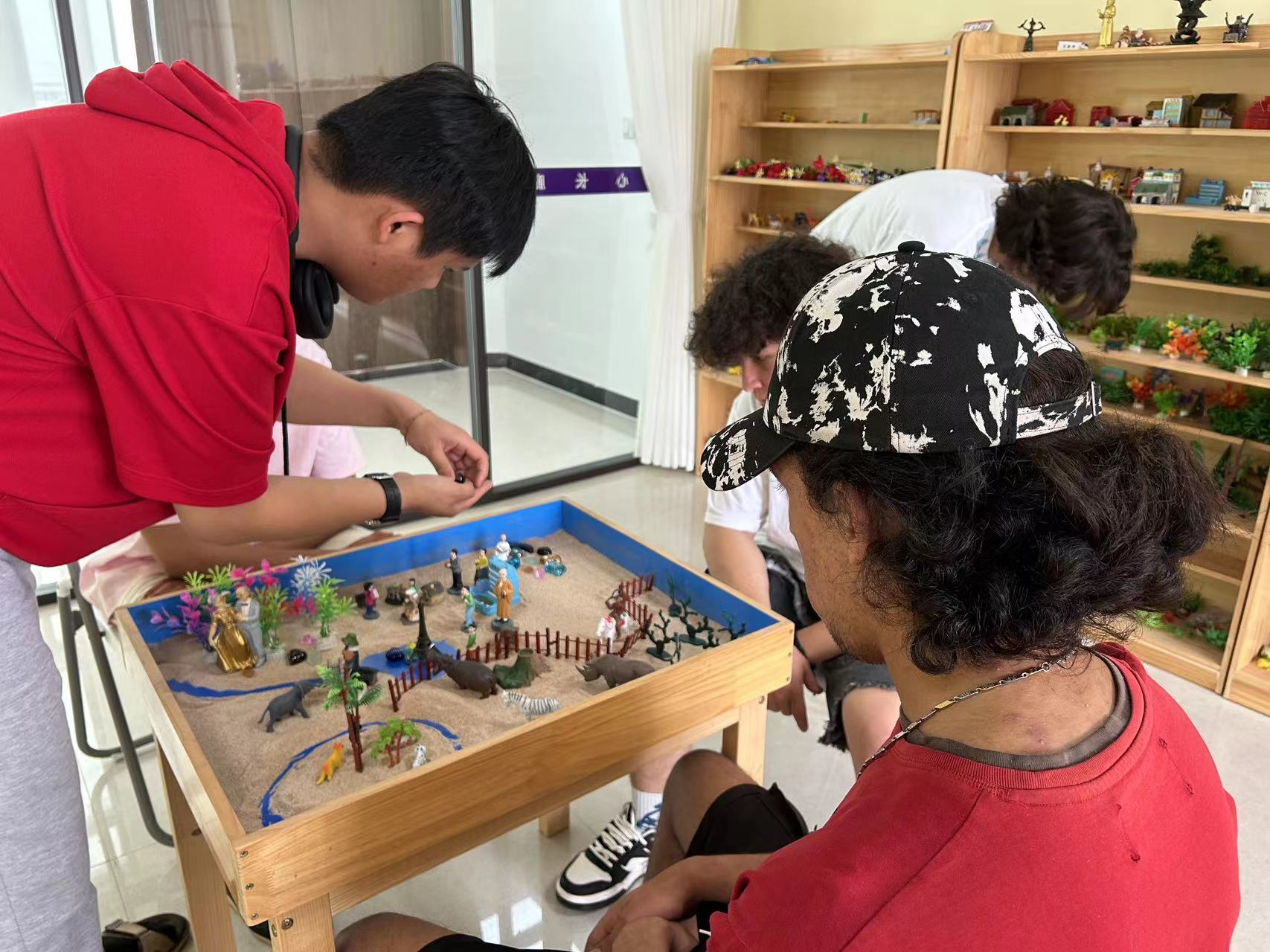 五月二十日,国际教育学院开展群体沙盘心理辅导活动。“沙盘游戏”作为最早被引入国内的心理健康辅导设施,具备非语言性沟通的特点。在学校系统中,“沙盘游戏”可用于对学生个体或团体进行心理辅导,从而促进团队精神的升华,提升凝聚力,帮助学生在团体中调整自己,学会为人处世,解决心理问题等。